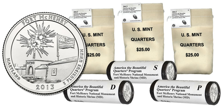 Pricing and Options for 2013 Fort McHenry Quarter in Bags and Rolls