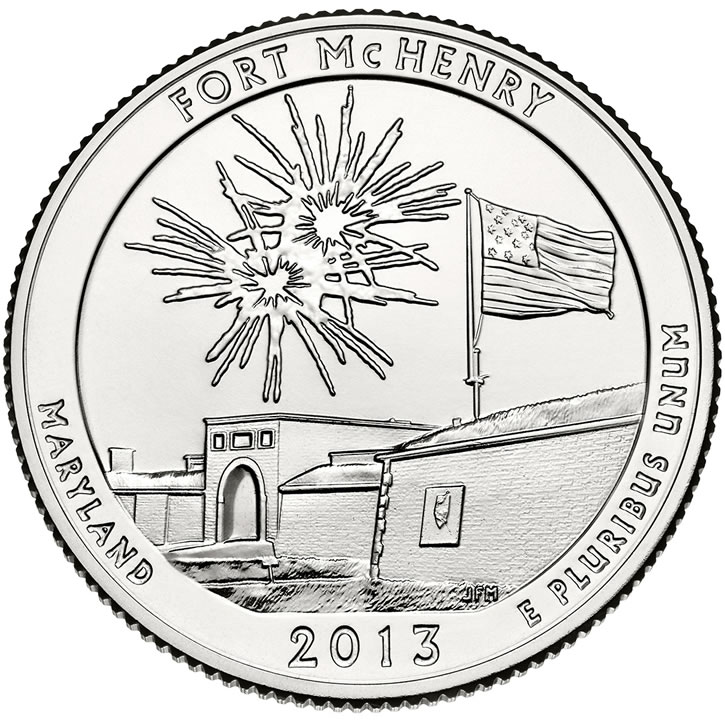 This is not the first opportunity to see the 2013 Fort McHenry quarter, at least for coin collectors. All five 2013 quarters were introduced earlier this year in several proof and uncirculated U.S. Mint products for collectors, like the popular 2013 Proof Set, 2013 Silver Proof Set, 2013 Mint Set and the 2013 America the Beautiful Quarter Proof Sets in clad and silver. Today marks the first time the Fort McHenry quarter is available in circulating quality and its entrance into circulation for commerce.