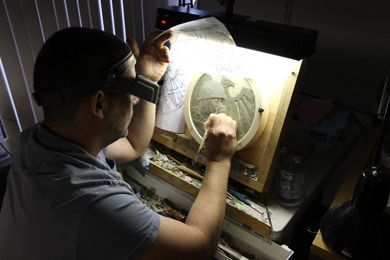 Completed models, whether in plaster or digital, are always reviewed for errors such as misaligned letters, incorrect or missing design elements and manufacturability.