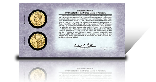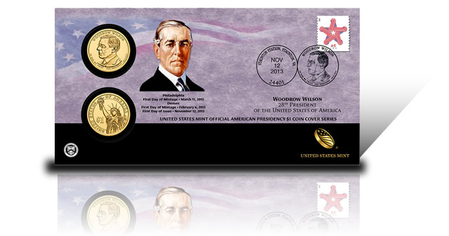 Today, Nov. 12, 2013, the United States Mint launched its 2013 Woodrow Wilson Presidential $1 Coin Cover.
