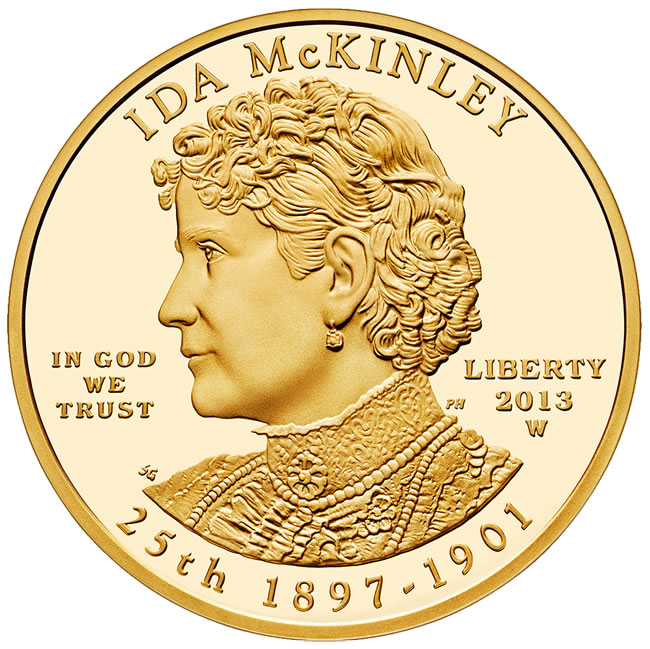 Today, Nov. 14, 2013, the United States Mint released Ida McKinley First Spouse Gold Coins, the first of five 2013-dated strikes featuring former First Ladies.