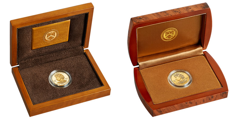Each coin is encapsulated and presented in a lacquered hardwood display case. A Certificate of Authenticity is also included.