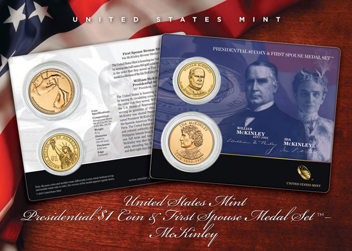 For the first time this year, the United States Mint launched a Presidential $1 Coin & First Spouse Medal Set. It honors William McKinley, the 25th President of the United States, and his wife, Ida McKinley. Sales began Tuesday, November 19, 2013 at noon Eastern Time.