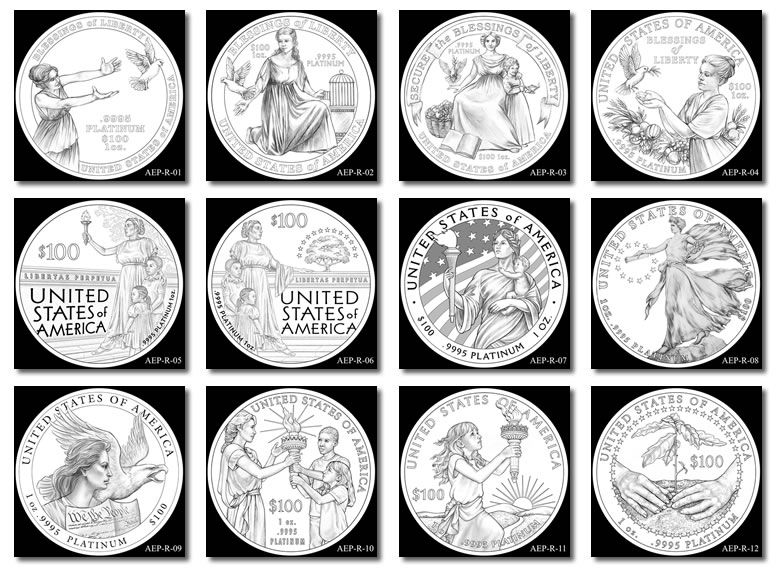 Twelve design candidates for the Blessings of Liberty reverse image have been shared with the public. These twelve candidates will now undergo review before a final selection is made.