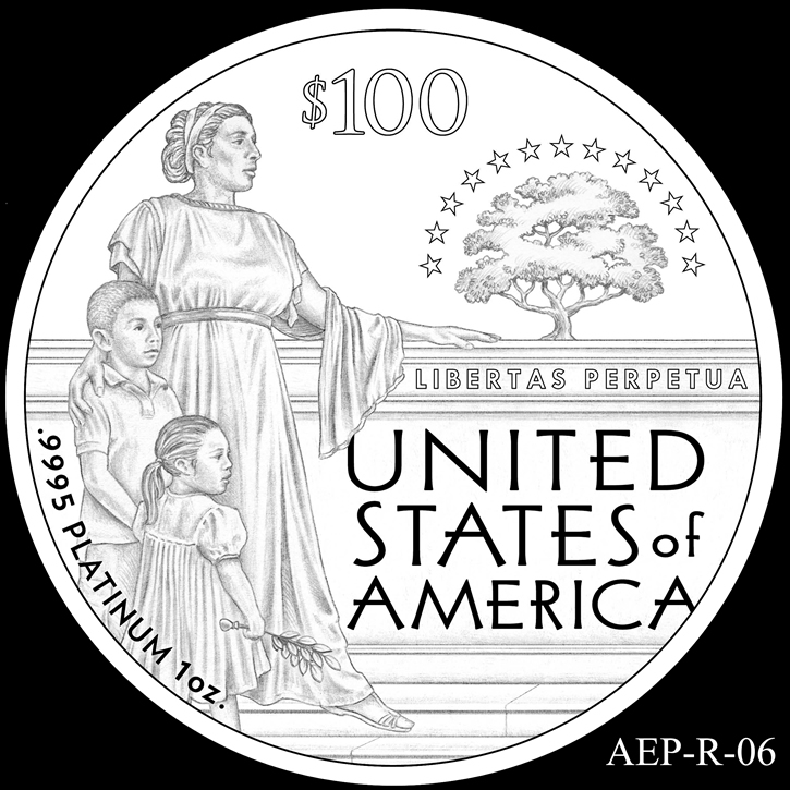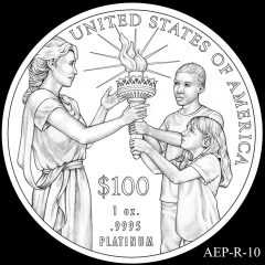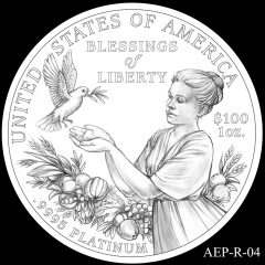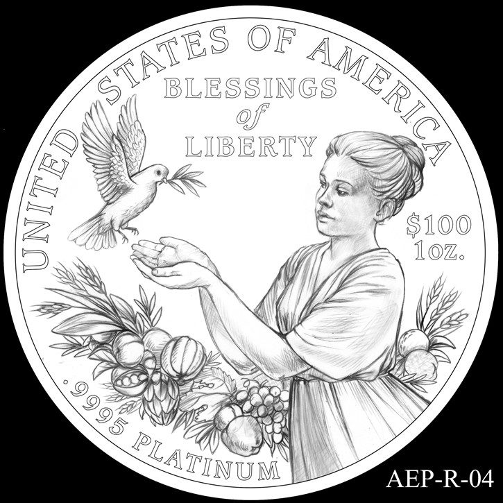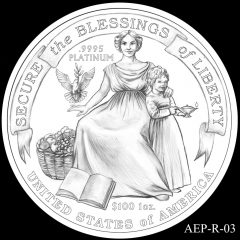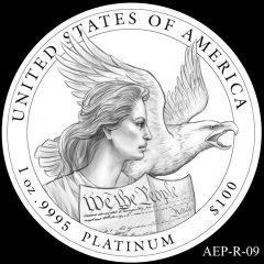 The 2014 American Platinum Eagle will mark the end of a six-year series dedicated to the six principles found in the preamble of the U. S. Constitution. For 2014, the chosen theme for the reverse of the coin is "To Secure the Blessings of Liberty to Ourselves and our Posterity."