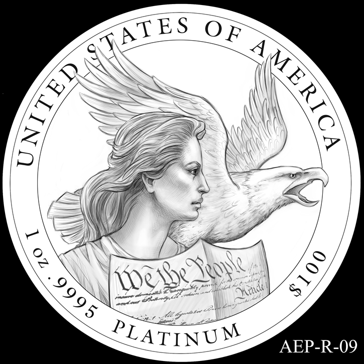 American Platinum Eagles debuted in 1997 and have featured annually changing reverse images. The preamble of the U.S. Constitution sub-series first appeared in 2009 and is based on narratives prepared by the Chief Justice of the United States at the request of the United States Mint.