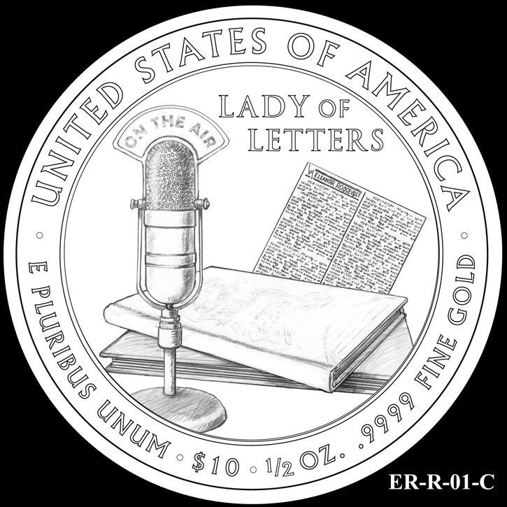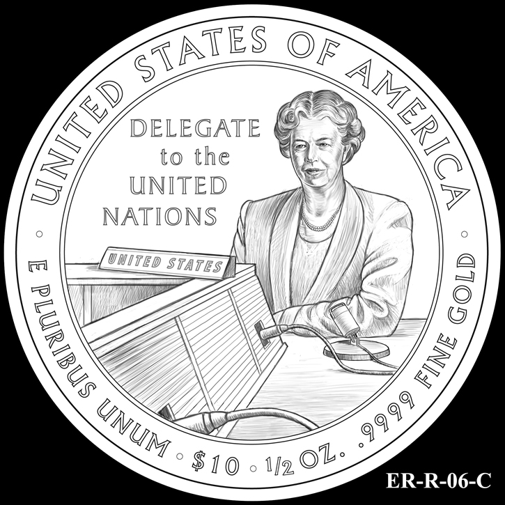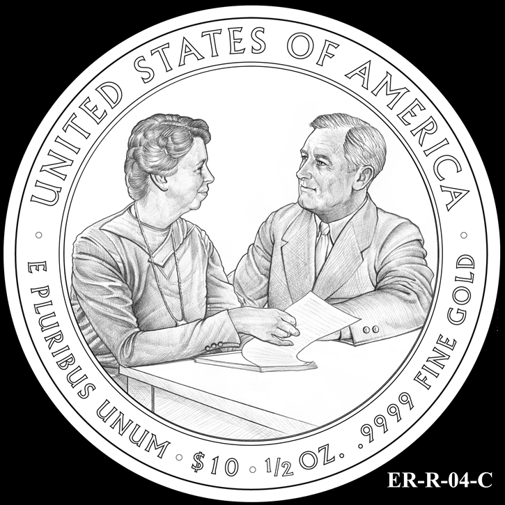 Reverse design candidates include a total of six different options for the Eleanor Roosevelt release.