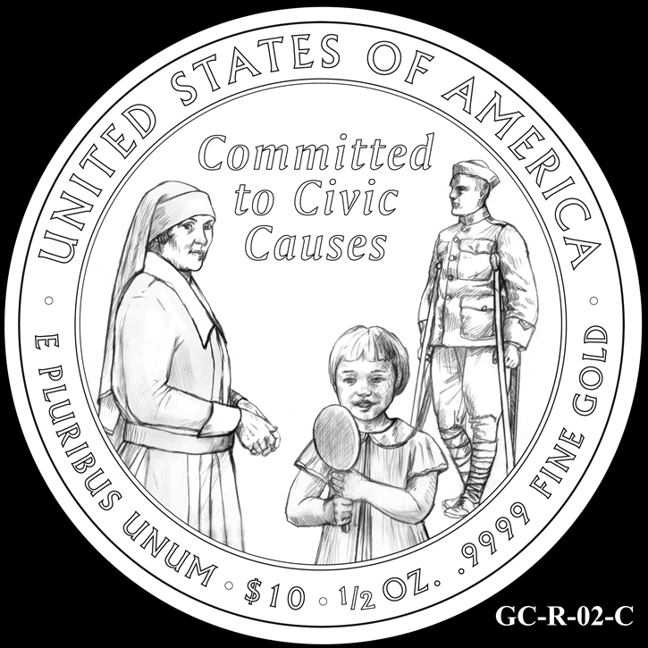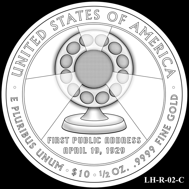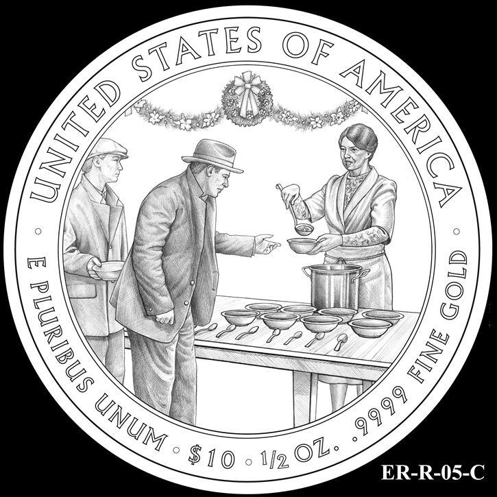 The reverse side of the coin will feature one of five proposed images emblematic of Lou Hoover’s life.