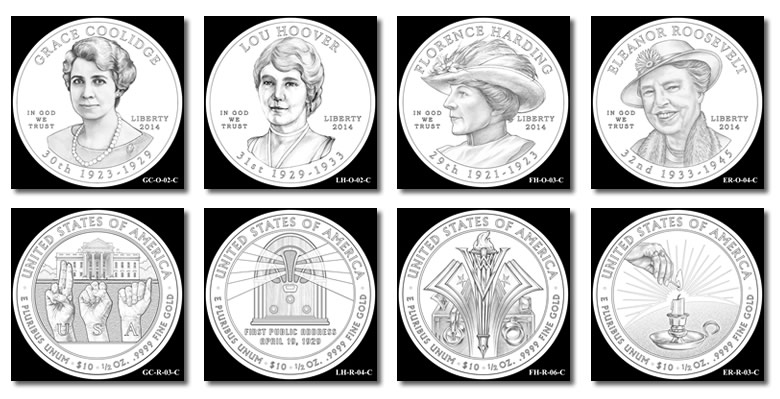 Everyone now has a chance to see what the four 2014 First Spouse Gold Coins may look like. The United States Mint last week revealed a total of 42 different design candidates.