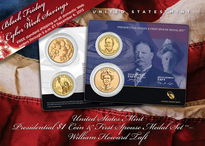 At noon time today, Dec. 3, 2013, sales began for the third of five 2013-dated Presidential $1 Coin and First Spouse Medal Sets from the United States Mint. This one honors William Howard Taft and his wife Helen, the 27th President and First Lady.