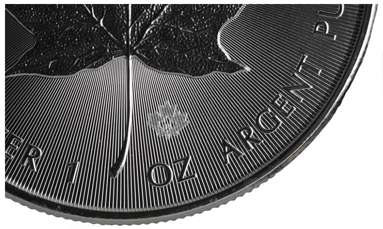 Beginning in 2014 and forever forward, Silver Maple Leaf bullion coins will have the "radial lines" finish background. The micro-engraved laser mark is also permanent, with the centered numeral adjusted by year. The bullion coins will keep their other traditional obverse and reverse designs, and their specifications to include: