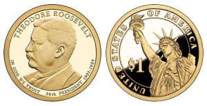 As the 26th President the United States, Theodore Roosevelt Presidential $1 Coins were the 26th issued in the Presidential $1 Coin Program. They debuted in rolls, bags and boxes on April 11, 2013.
