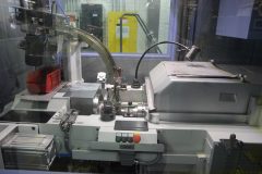 Luis Cocha monitors the control panel for the Granger Die Grinder, where he checks and monitors the beam alignment of the dies. Inside of Granger Die Grinding Machine Here, grinding of a die is seen up close Camera view of die orientation on Granger die grinding machine Granger Die Grinding Machine with Die Attached Several die measurements are taken after the grinding process