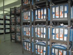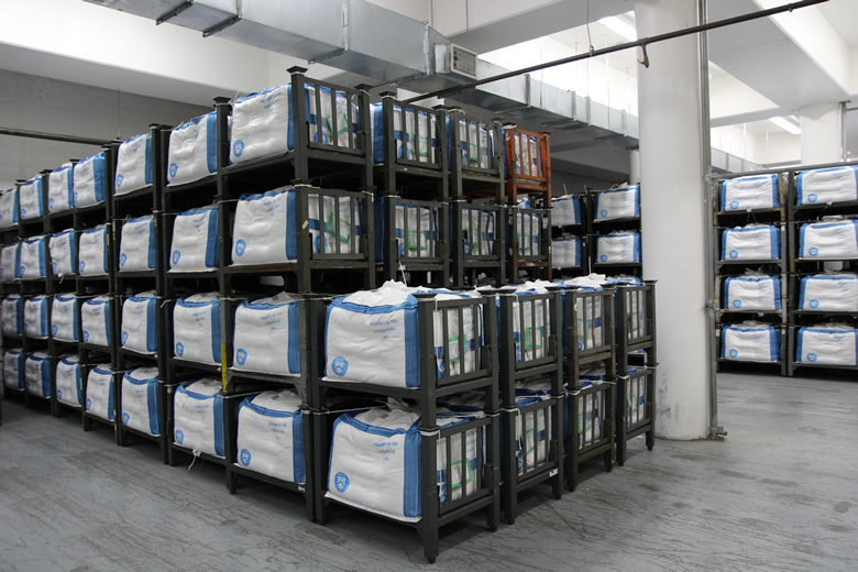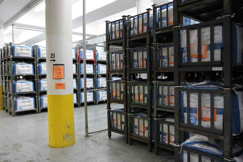 Bulk bags go into storage in the vault, readied for shipping.