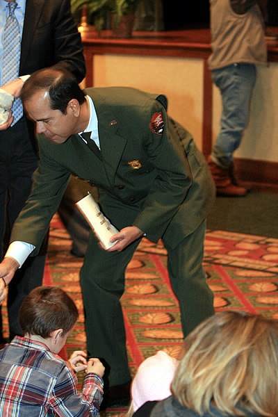 There were some grade schoolers and older kids from the local high school in attendance. Each received a free, shiny Great Smoky Mountains National Park Quarter after the ceremony.
