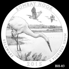 U.S. Mint design candidates present wide-ranging scenes for reverses of 2015 America the Beautiful Quarters and related five ounce silver coins.