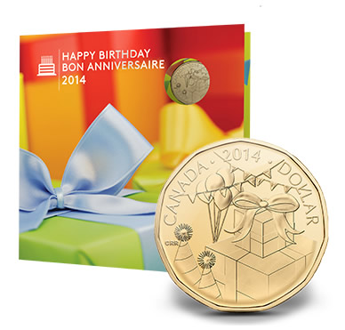 An excellent gift option for the birthdays of the year is the Royal Canadian Mint’s 2014 Birthday Gift Set. These sets include uncirculated $2, 25¢, 10¢, and 5¢ coins along with a specially struck $1 coin.