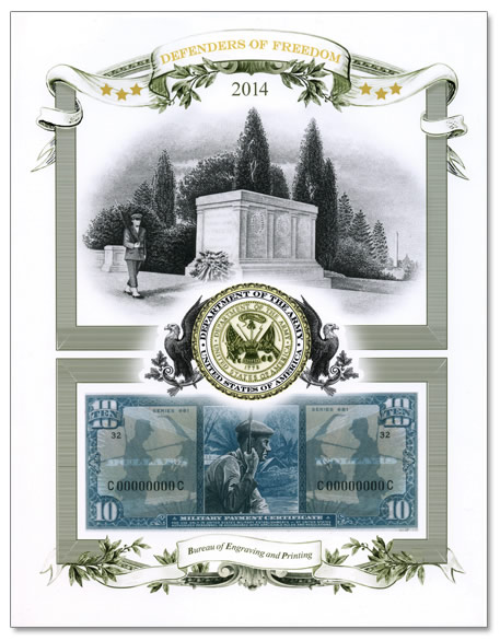 Beginning at 8:00 EST on the 27th, collectors can order the 2014 Army Intaglio Print at www.moneyfactorystore.gov. Its release is in conjunction with the BEP’s participation at the ANA’s National Money Show in Atlanta, Georgia.