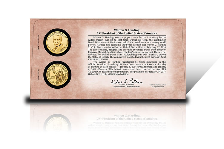 Anyone interested may place orders for the 2014 Warren G. Harding $1 Coin Cover by visiting the United States Mints online catalog or by calling 1-800-USA-MINT (872-6468). The direct link to the Mint’s product page for coin covers is: