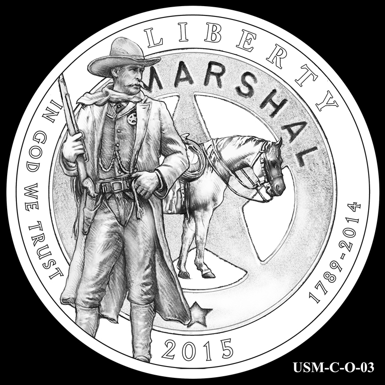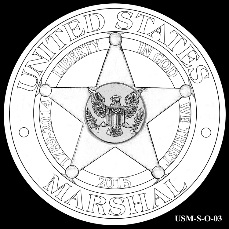 Commemorative coins will be issued in 2015 by the United States Mint to mark the 225th Anniversary of the U.S. Marshals Service. As part of the process leading to that release, multiple design candidates have been created and are getting reviewed.