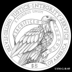 The obverse of the gold coins is required by the authorizing legislation to bear an image of the United States Marshals Service Star. As such, these five design candidates contain the service star along with other design elements.