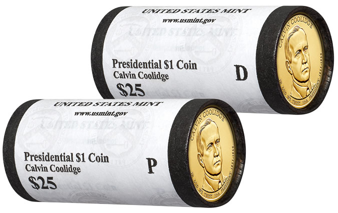 Priced at $32.95, rolls contain 25 Calvin Coolidge Dollars. Buyers have their choice of rolls coming from either the Philadelphia or Denver Mint.