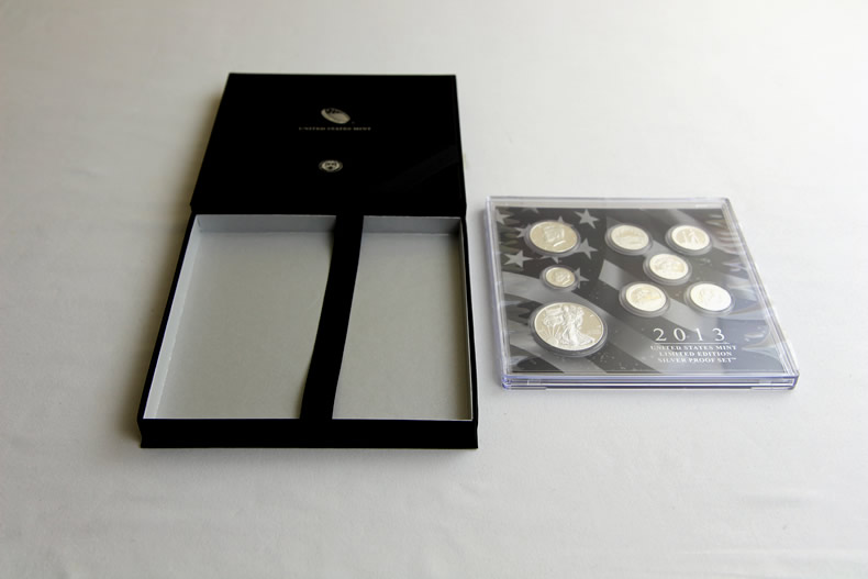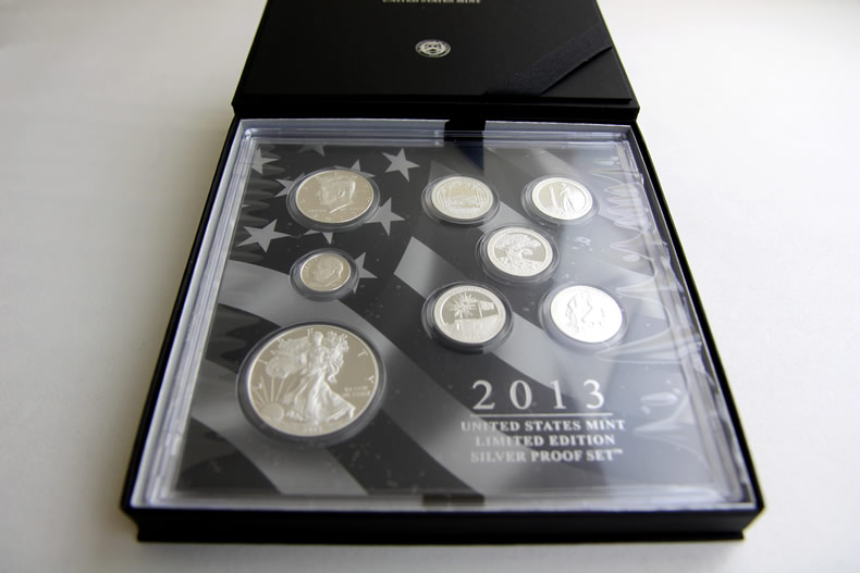 Released on Dec. 12, 2013 and priced at $139.95, the set includes the 99.9% pure 2013-W Proof Silver Eagle and the 90% silver 2013-S Kennedy half-dollar, five 2013-S America the Beautiful Quarters, and the 2013-S Roosevelt dime.