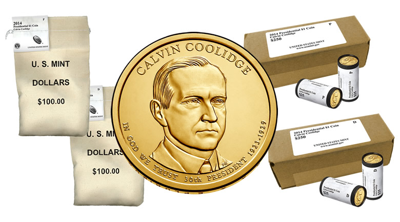 Calvin Coolidge Presidential $1 Coins in rolls, bags or boxes are also available from the Mint. These products launched on April 10.