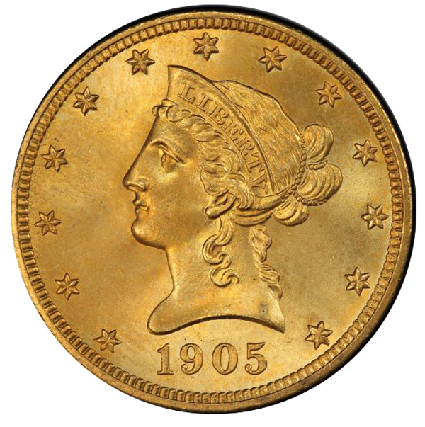 - 1905 $10 PCGS MS67 CAC Ex Simpson / Hall