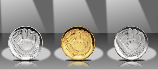Authorized by Public Law 112-152, coins of the program are struck in gold, silver and clad and celebrate the 75th anniversary of the National Baseball Hall of Fame. The coins feature common designs of a baseball on the convex side and a baseball glove struck on the concave side, making them the first curved coins ever produced by the U.S. Mint.