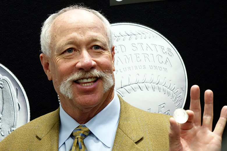 Hall of Fame pitcher Richard "Goose" Gossage stopped by the U.S. Mint in Denver, Colorado today, May 13, to strike an uncirculated clad half-dollar for the 2014 National Baseball Hall of Fame Commemorative Coin Program.