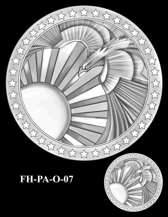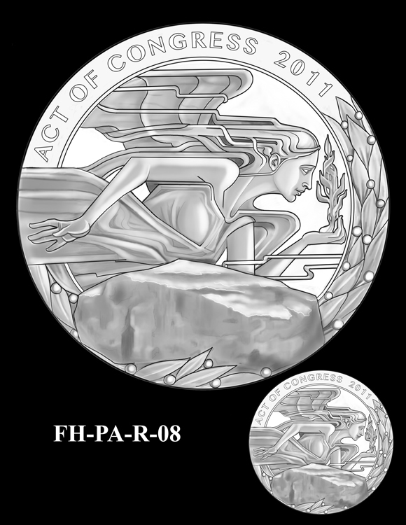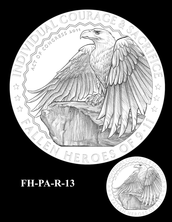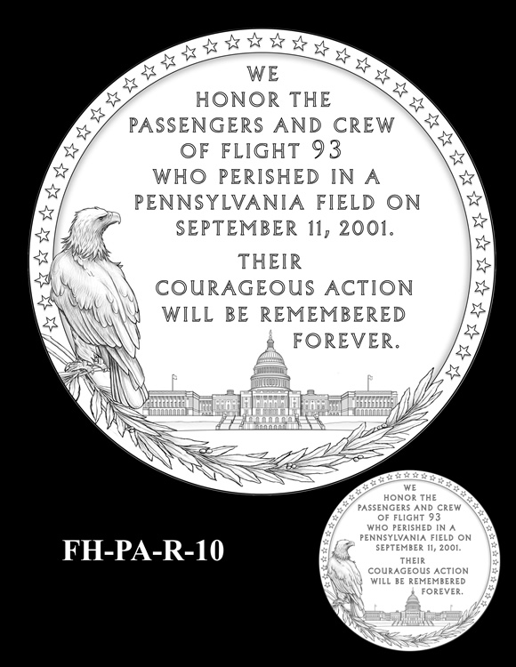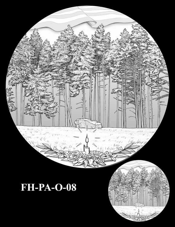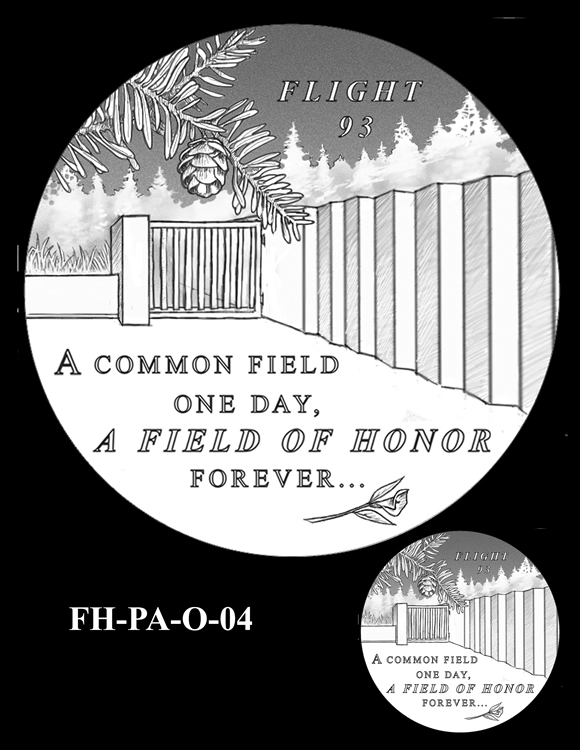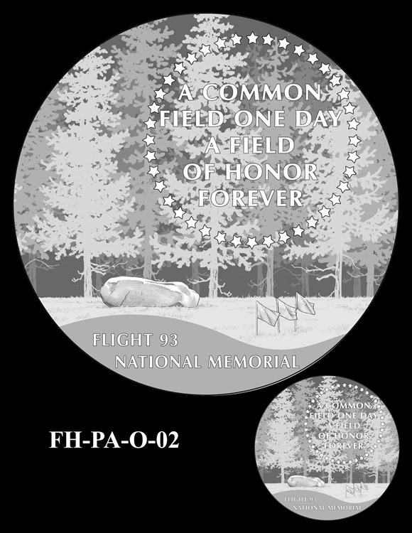 In total, there are 13 obverse and 16 reverse design candidates for the Flight 93 National Memorial Fallen Heroes of 9/11 Congressional Gold Medal. Here are the obverse candidates: