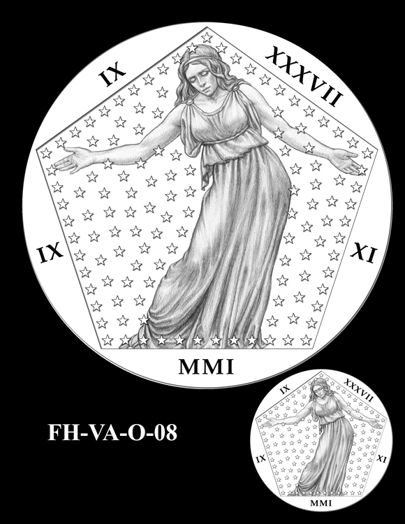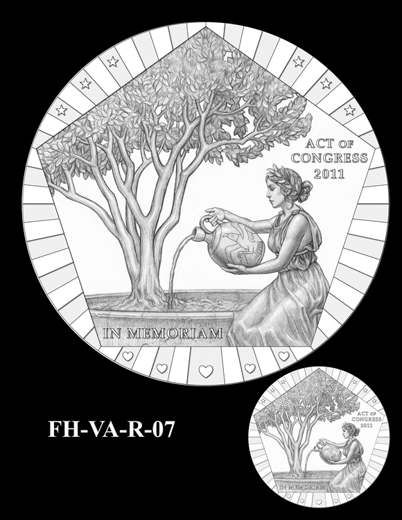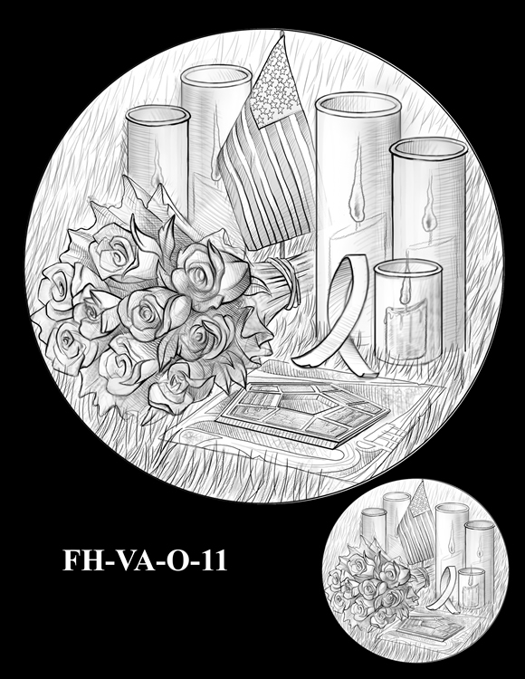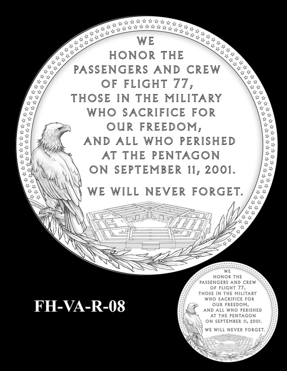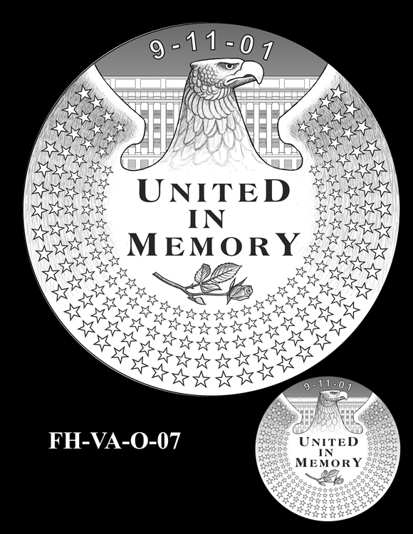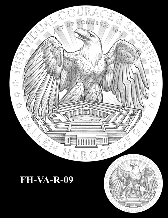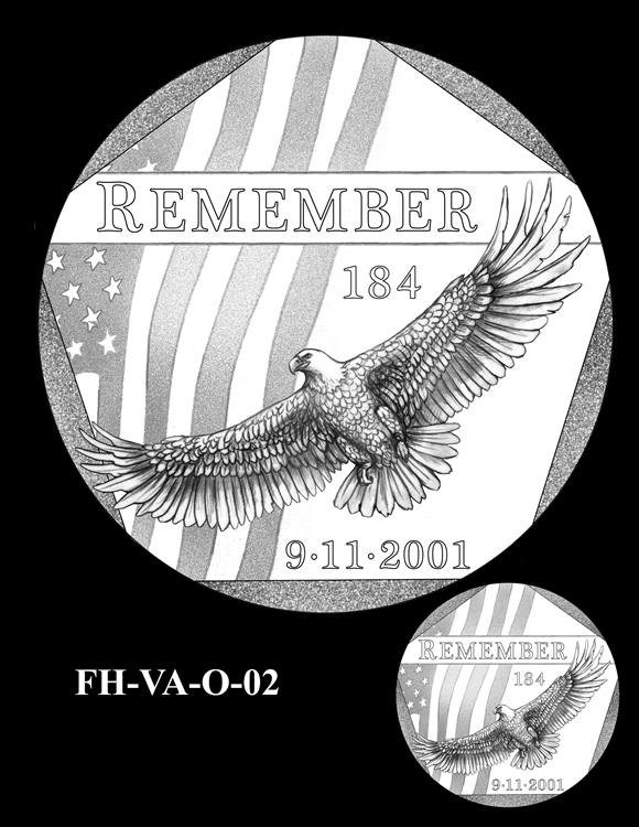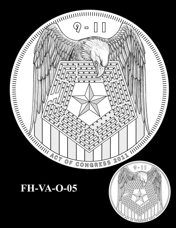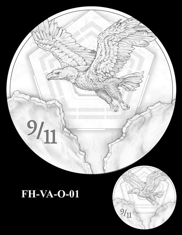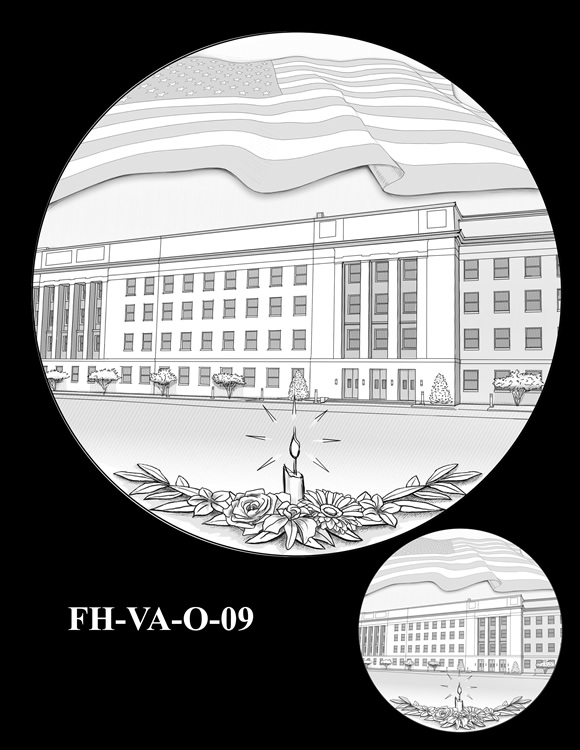 In total, there are 13 obverse and 11 reverse design candidates for the Pentagon Memorial Fallen Heroes of 9/11 Congressional Gold Medal. Here are the obverse candidates: