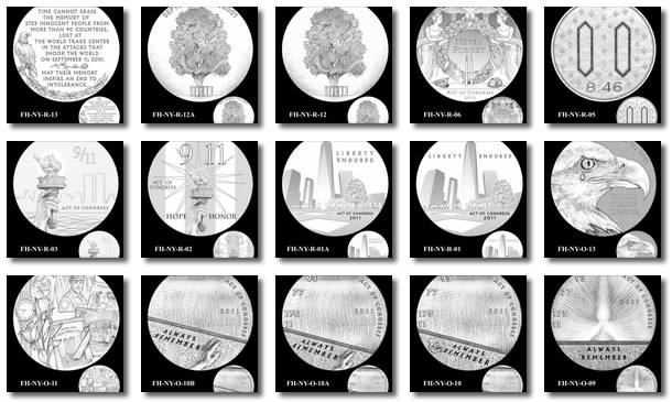 In total, there are 18 obverse and 13 reverse design candidates for the National September 11 Memorial and Museum Fallen Heroes of 9/11 Congressional Gold Medal. Here are the obverse candidates: