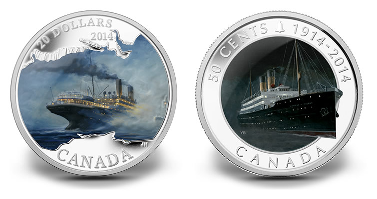 Issued as the inaugural strikes in the Royal Canadian Mint’s "Lost Ships in Canadian Waters" series are the 2014 $20 RMS Empress of Ireland Silver Coin and the 2014 50-Cent RMS Empress of Ireland Silver Plated Coin.