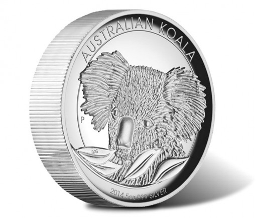Also in June, the Perth Mint debuts the 2014 Australian Koala 5 oz Silver Proof High Relief Coin. The reverse features the same image of a single koala and eucalyptus leaves as found on other 2014 koala coin issues, but is offered in high relief for enhanced detail.