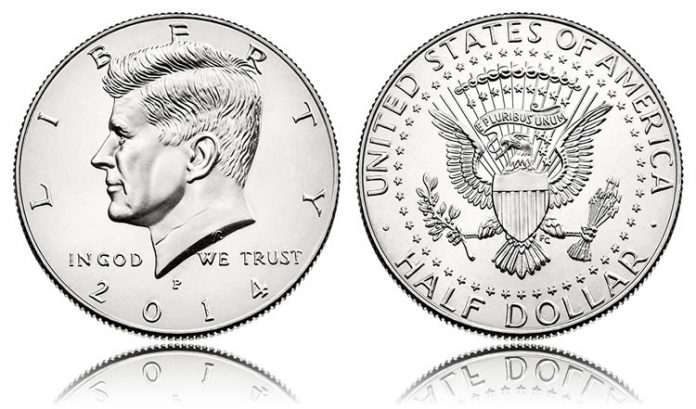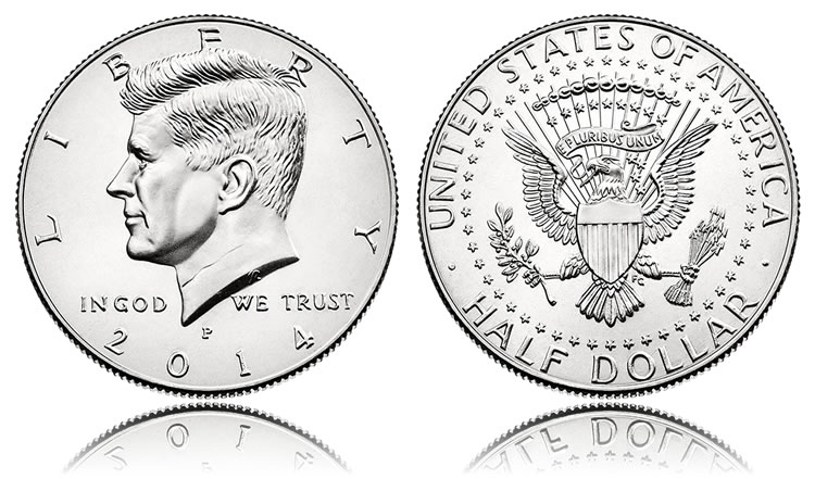 The 50th Anniversary Kennedy Half-Dollar Uncirculated Coin Set has two uncirculated Kennedy halves with one from the Philadelphia Mint and the other from the Denver Mint.