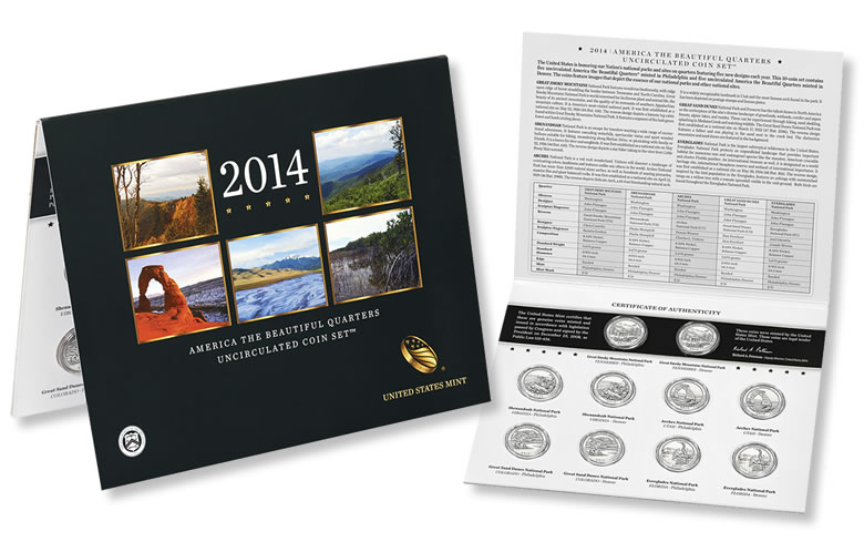 2014 America the Beautiful Quarters Uncirculated Sets are available through the United States Mint’s website, right here, or by calling 1-800-USA-MINT (872-6468).