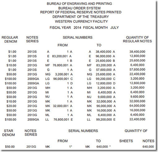 Here are images of the BEP reports showing the type of banknotes manufactured during the month: