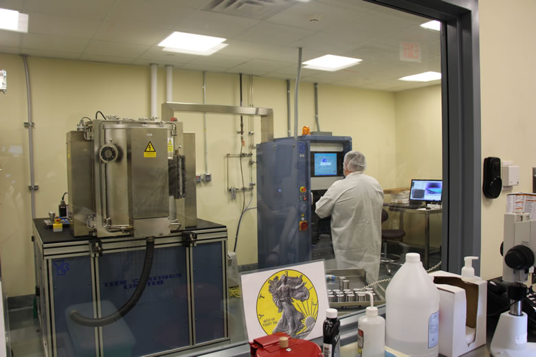 Finally, dies are chrome-hardened by a Physical Vapor Deposition (PVD) Chamber in a clean room. This last photo shows Michael Gadwah, Die Finishing Specialist, as he programs the computer to start a PVD ceramic coating cycle.