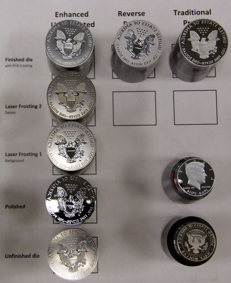 More recently, and with notable success that is best exemplified by last year’s 2013-W Enhanced American Eagle Silver Uncirculated Coin, the U.S. Mint has been experimenting with new polishing and laser frosting techniques that yield many more finishes.