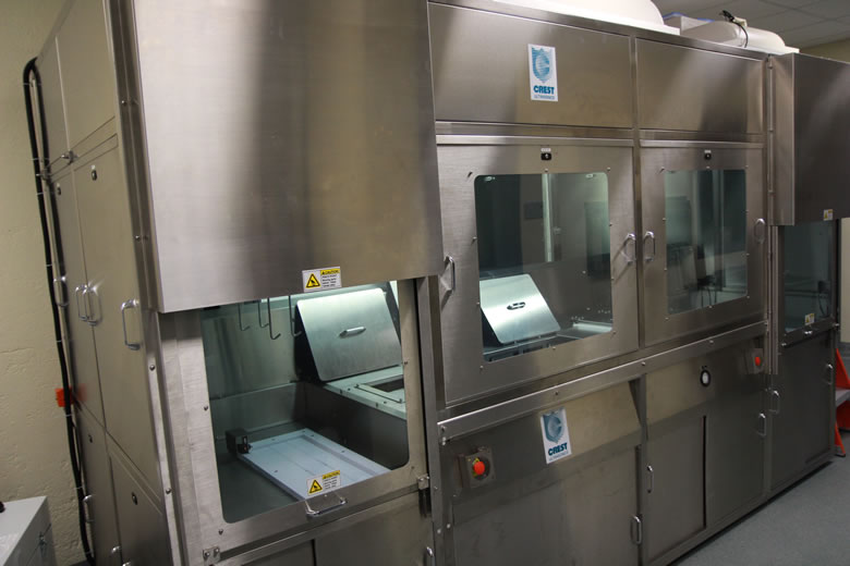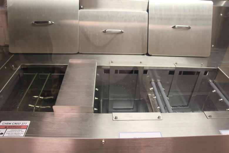 Finished dies are then cleaned ultrasonically with the washer shown below.