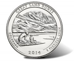 Sales kicked off on Monday for the Great Sand Dunes National Park Five Ounce Silver Bullion Coin, the fourth 2014-dated release from the U.S. Mint’s series of America the Beautiful Five Ounce Silver Bullion Coins. Its design is identical to the Great Sand Dunes National Park Quarter.