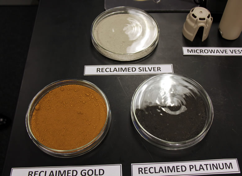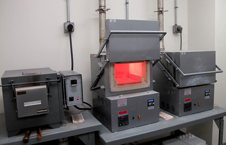 These next couple of photos cover the application of fire assay, a multi-stepped method that assayers have used for centuries because of its exacting results in finding the weight and purity of metals. In essence, the method uses chemicals and extreme heat to separate minerals and other metals from gold. (Here’s a site that does a good job in summarizing how it works.) This first photo highlights stages of the fire assay method.