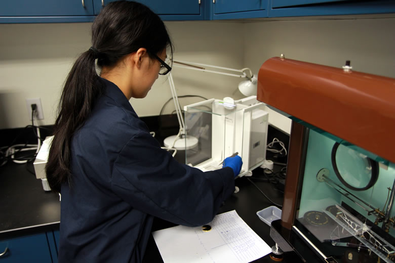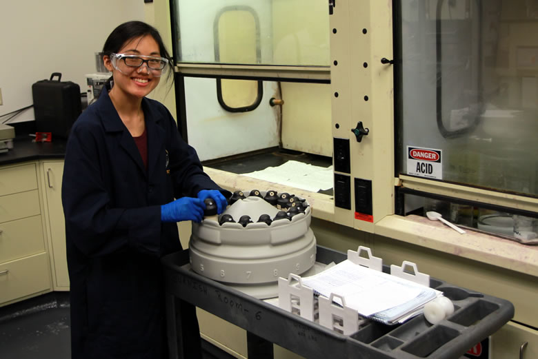 Later in our visit, we caught up with Grace again. She was preparing microwave vessels using aqua regia to dissolve 0.9999 fine gold samples for assaying.