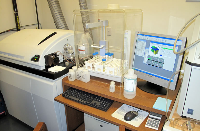 The next photos are of an optical emission spectrometer and a mass spectrometer. Both are used within the assay process.