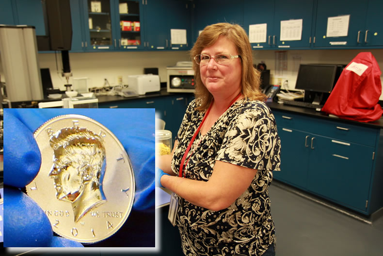 Before ending, our thanks go out to chief assayer Jeanette Grogan. Jeanette showed us around the lab and she also gave us our first look at 2014-W 24K Kennedy Half-Dollar Gold Coins and of 2014-W Reverse Proof Kennedy Half-Dollar Silver Coins, two of the seven coins that celebrate the 50th anniversary of the Kennedy half-dollar.