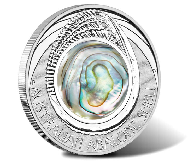 Continuing the Perth Mint’s tradition of offering unique and innovative products, the 2014 Australian Abalone Shell Silver Proof Coin offers a sculpted representation of an abalone shell along with a centerpiece of a polished fragment of a real abalone shell.