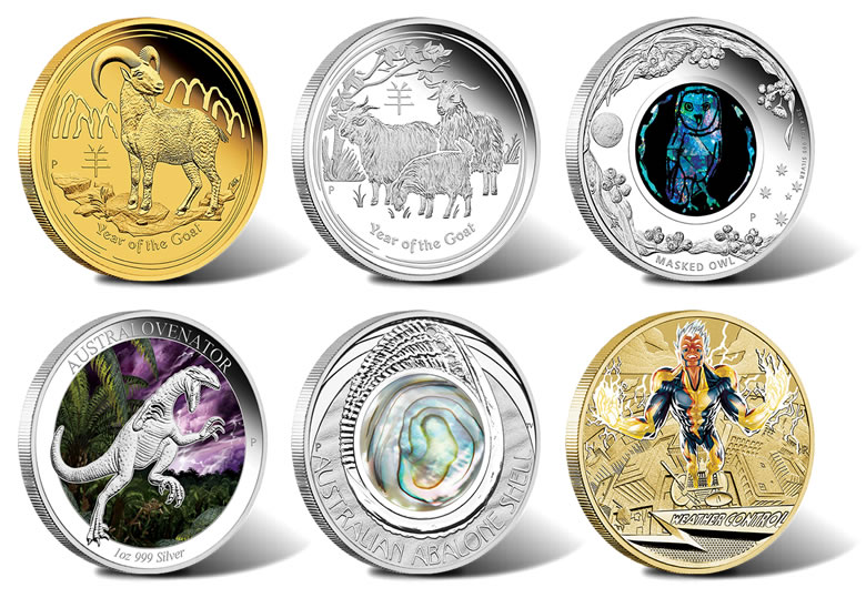 Among the new releases are lunar gold and silver 2015 Year of the Goat coins. They are joined by coins depicting an abalone shell, masked owls and superpowers. In addition, September marks the debut of a new series of Perth Mint dinosaur coins.