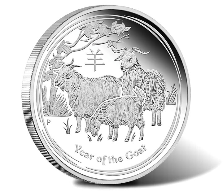 Also available are 2015 Year of the Goat Silver Proof Coins. Shown on reverses is a family of three goats set against a rural scene.